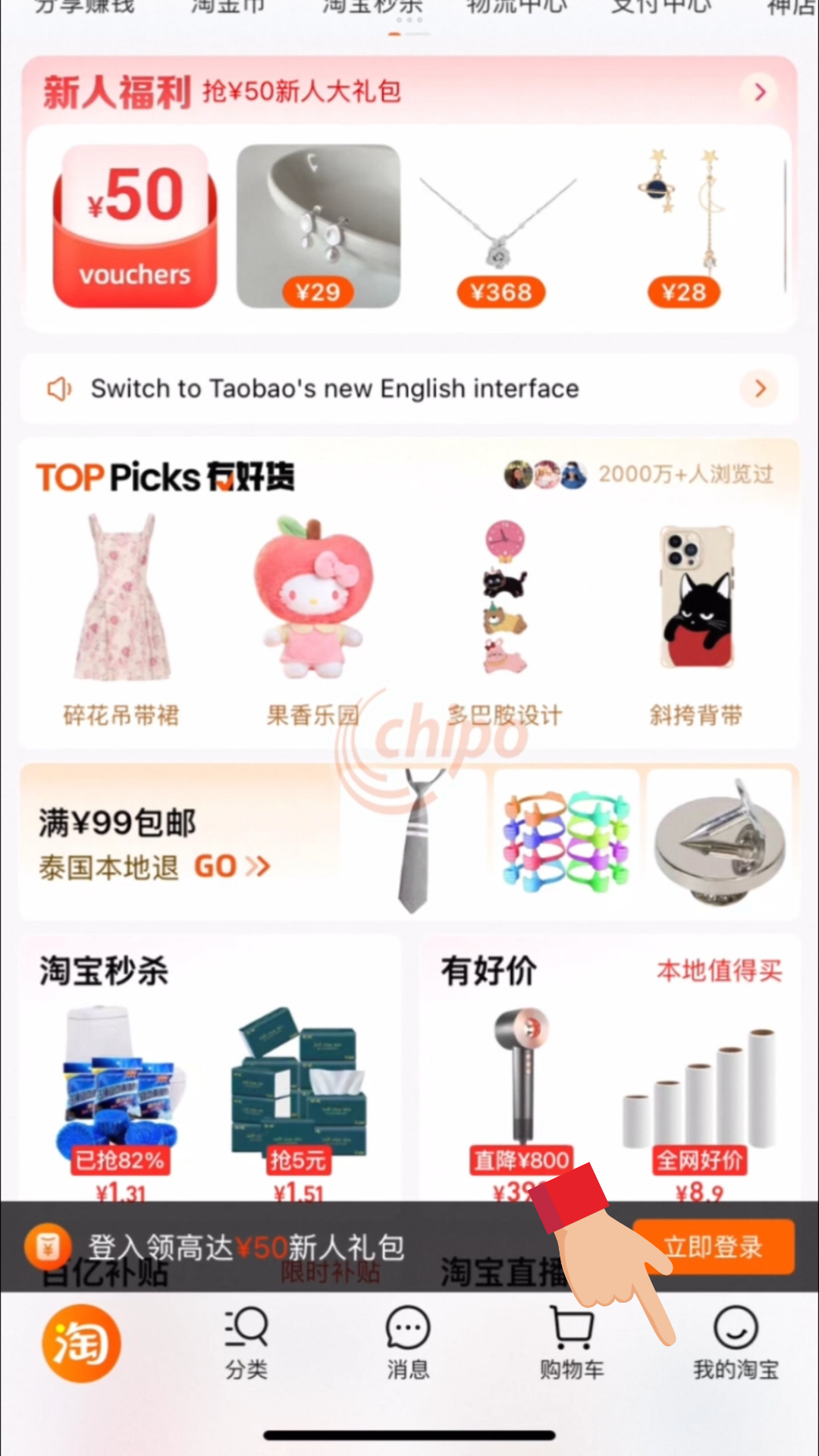 1.ดาวน์โหลดแอป Taobao ผ่าน App Store หรือ Google Play