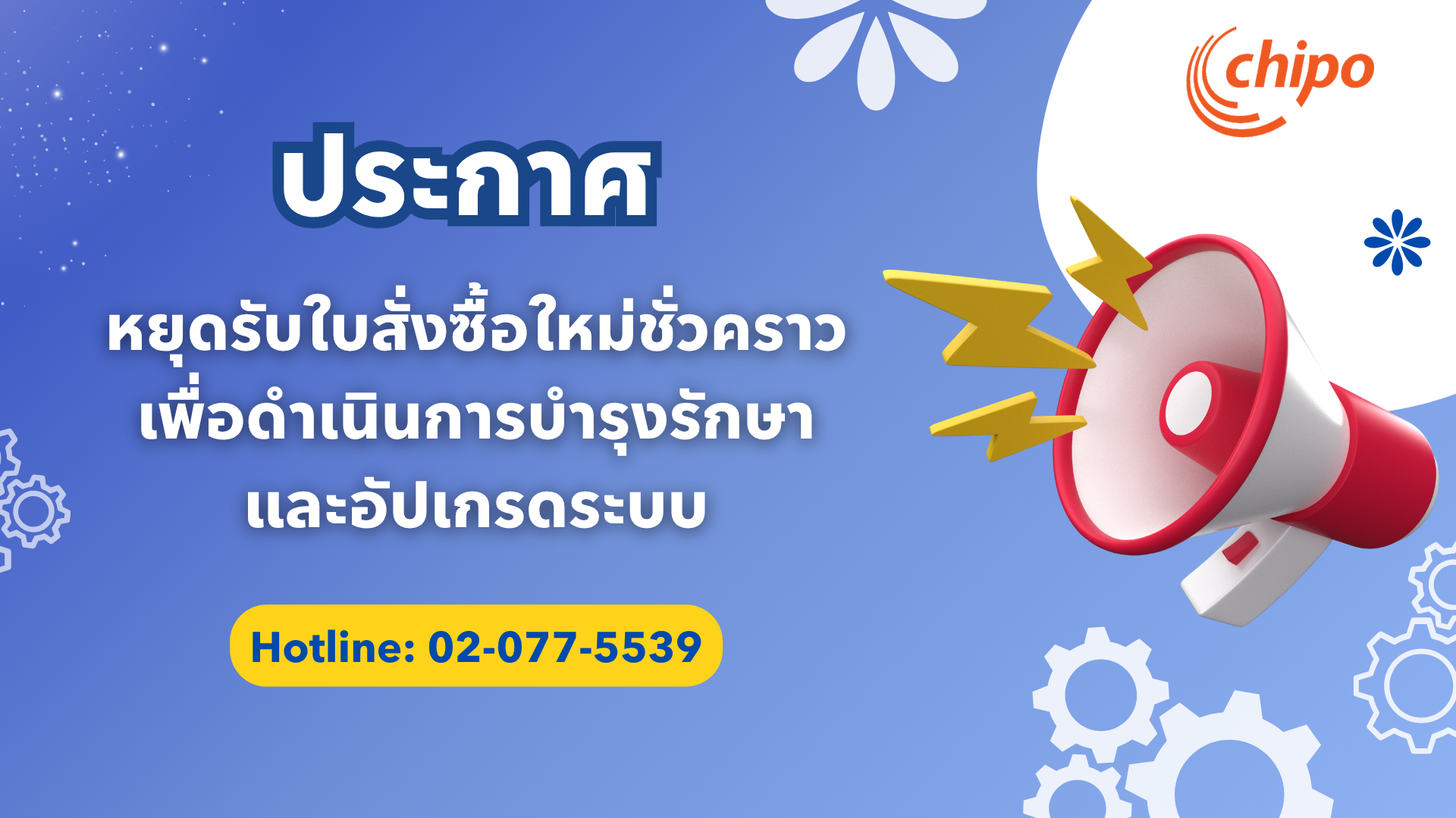 เมื่อระบบกลับมาเปิดให้ใช้งานได้ตามปกติ เราจะแจ้งให้ลูกค้าทราบอีกครั้งผ่านช่องทางเว็บไซต์ของ ChipoThai