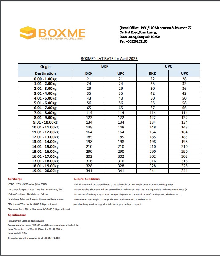 ข้อกำหนด และนโยบายเกี่ยวกับการจัดส่งสินค้าในไทย ได้ประยุกต์ใช้ตั้งแต่วันที่ 1 มกราคม 2018 และอาจจะมีการเปลี่ยนเปลงตามช่วงเวลาให้เหมาะสมที่สุด ทุกการเปลี่ยนแปลงจะได้แจ้งล่วงหน้า